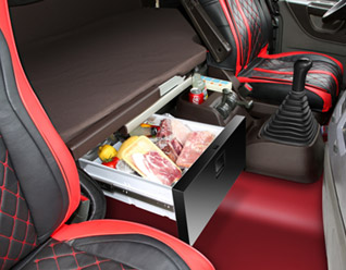 直拉式抽屜冰箱廣泛應用于國內主流重卡車型,更方便重卡司機的日常操作。